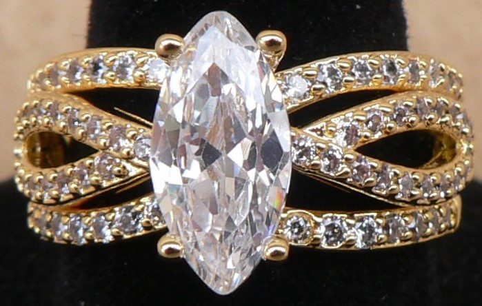 Here is a Fashion 14K Yellow Gold Marquise Cut Natural Diamond Ring. This ring is brought from a supplier. We use the suppliers description on our website. This ring retails for $700.00 There is 3 rings that come with this set. There is a top ring the middle ring and a bottom ring. The picture has a three rings together.