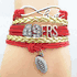 49ers Bing Wrapped Bracelet. This Bracelet is Red and Gold. With silver charms. The bracelets come with a adjustable links that will fit up to a 9" wrist. There is a silver color lobster clasp.