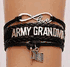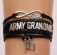 Army Grandma Wrapped Bracelet. This Bracelet is Black. With silver charms. The bracelets come with a adjustable links that will fit up to a 9" wrist. There is a silver color lobster clasp.