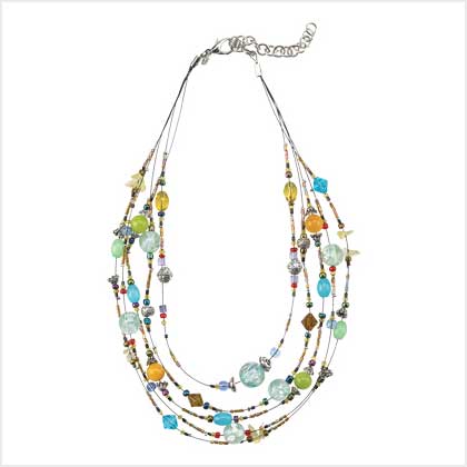 Dramatic multi-strand choker-style necklace is dripping with sparkling treasures! Crystal-clear faux-gemstone spheres and silver-tone accents dazzle, smartly set off by a myriad of faceted bugle beads. Adds a splash of festive color to all of your favorite fashions! Lobster claw clasp. 17 1/4" long; adjustable to 21" long. Has a Magnet.