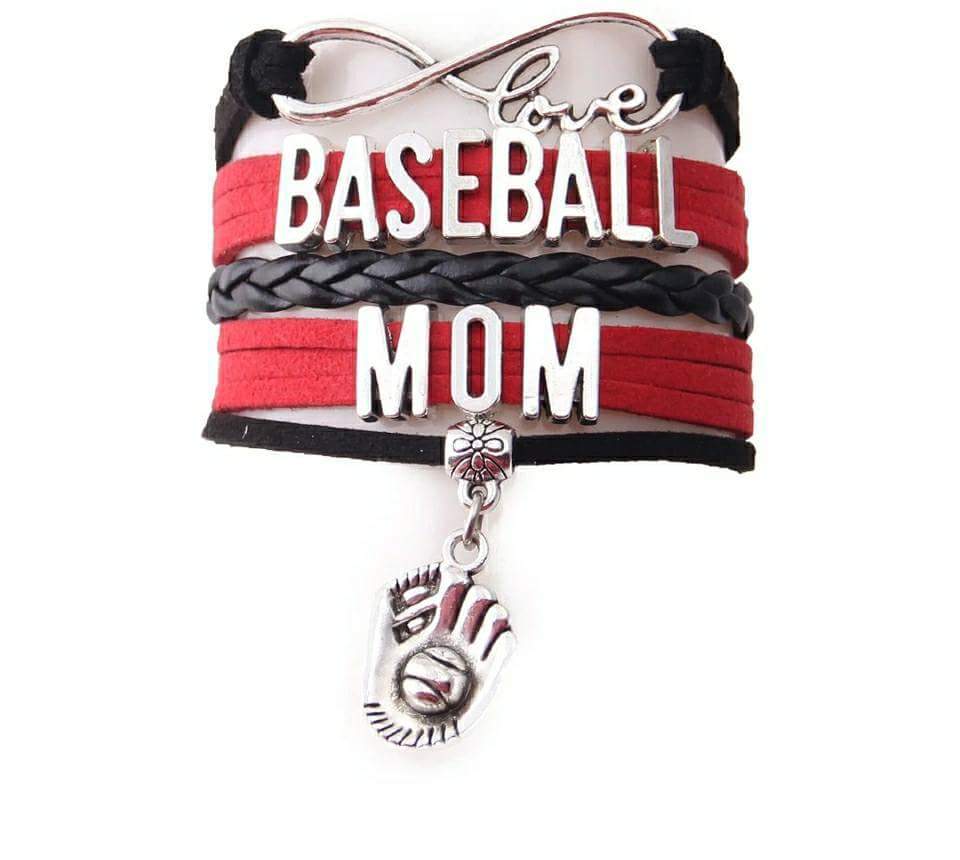 Baseball Mom Wrapped Bracelet. This Bracelet is Black and Red. With silver charms. The bracelets come with a adjustable links that will fit up to a 9" wrist. There is a silver color lobster clasp.