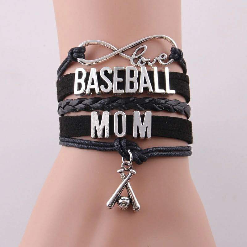 Baseball Mom Wrapped Bracelet. This Bracelet is Black. With silver charms. The bracelets come with a adjustable links that will fit up to a 9" wrist. There is a silver color lobster clasp.