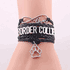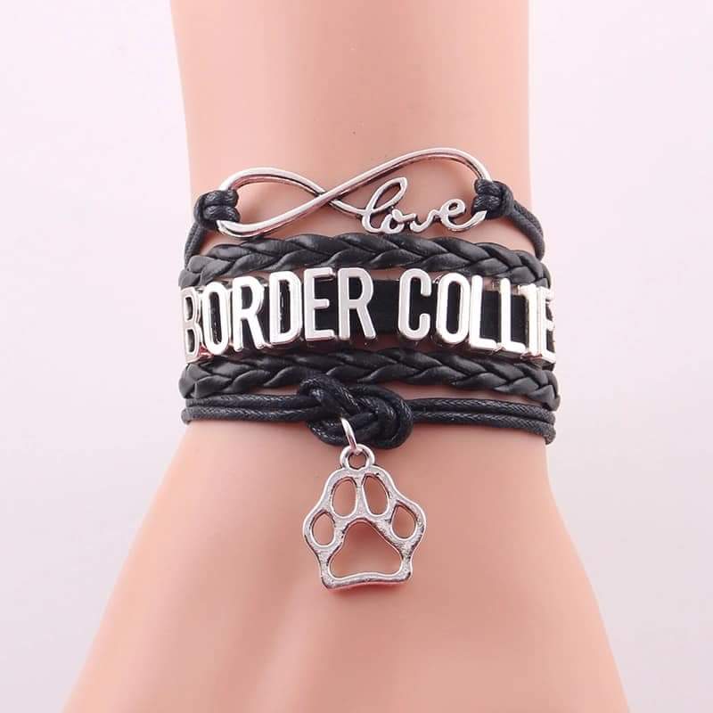 Border Collie Wrapped Bracelet. This Bracelet is Black. With silver charms. The bracelets come with a adjustable links that will fit up to a 9" wrist.