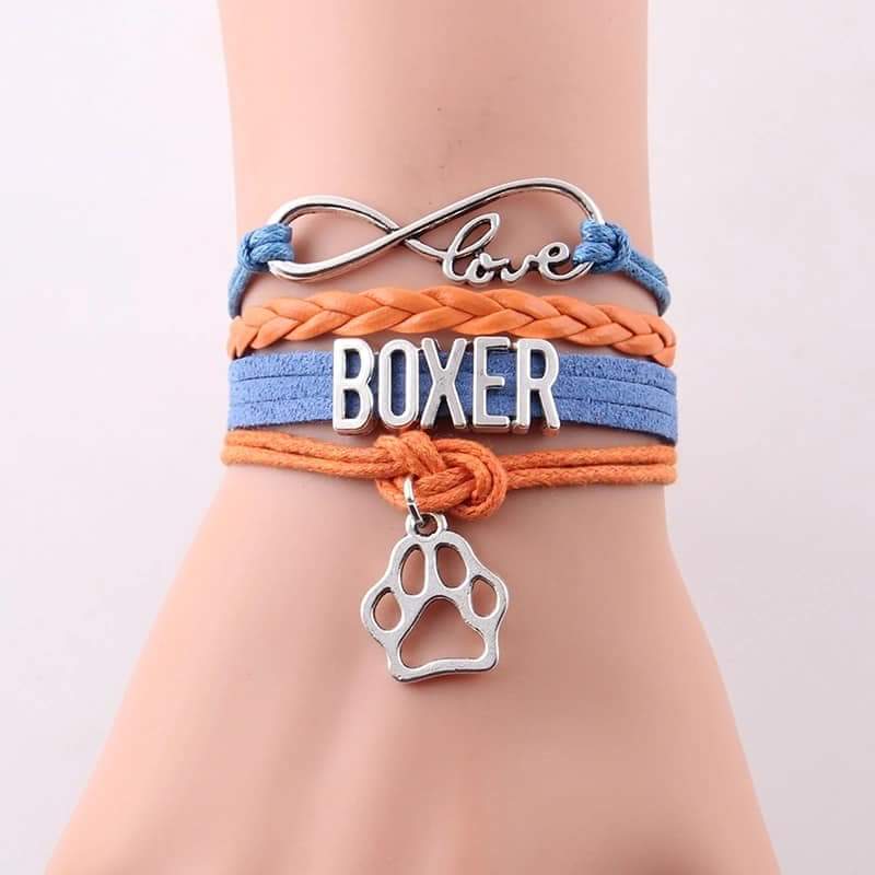 Boxer Wrapped Bracelet. This Bracelet is Royal Blue and Orange. With silver charms. The bracelets come with a adjustable links that will fit up to a 9" wrist.