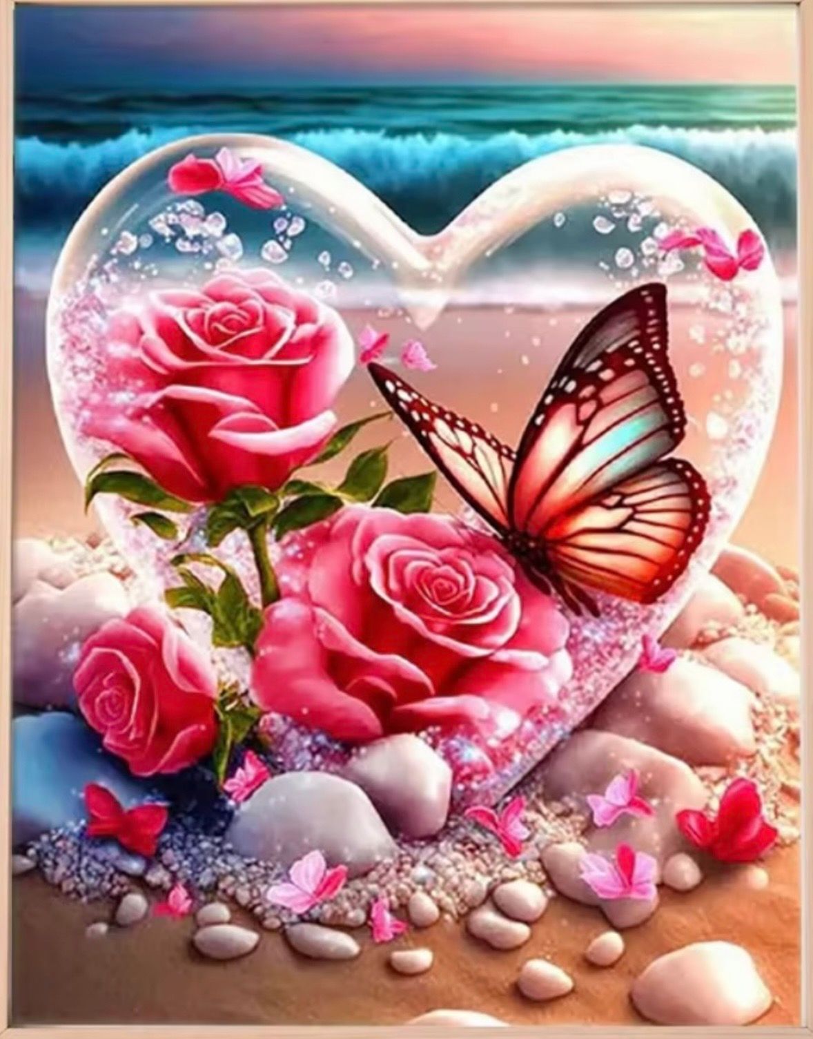 Here is a Butterfly With Flower Diamond Painting Kit. Approximately 30cm by 40cm. This is a full picture with round diamond dots. The kits come with a picture, diamond dots, tray, tool and wax.