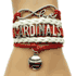 Here is a Cardinals Wrap Bracelet. The bracelet is Red and White Color. The Bracelet is 6 1/2" long with a 2" extension chain. There is a silver color baseball charm on the bottom of the bracelet. There is a infinity love charm on the top of the bracelet. In the middle of the bracelet there is silver color letter that say Cardinals. What a great bracelet to have if you are a Cardinals fan.