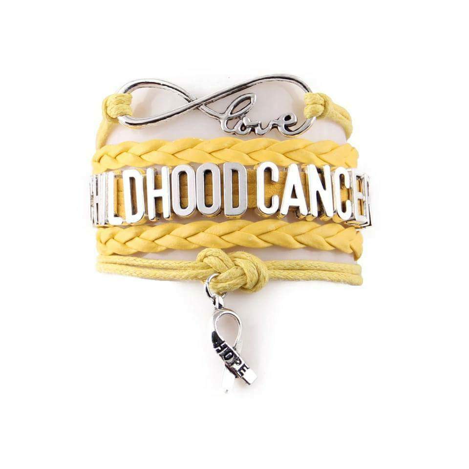 Childhood Cancer Wrapped Bracelet. This Bracelet is Yellow. With silver charms. The bracelets come with a adjustable links that will fit up to a 9" wrist. There is a silver color lobster clasp.