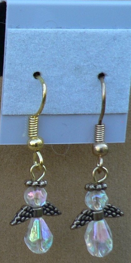 Here is a AB Clear Angel Earrings with gold color wings. These angel earrings have gold color fish hooks.