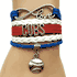 Here is a Cubs Wrap Bracelet. The bracelet is Light Navy Blue, White and Red. The Bracelet is 6 1/2" long with a 2" extension chain. There is a silver color baseball charm on the bottom of the bracelet. There is a infinity love charm on the top of the bracelet. In the middle of the bracelet there is silver color letter that say Cubs. What a great bracelet to have if you are a Cubs fan.