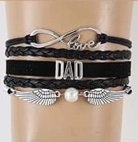 Dad Wrapped Bracelet. This Bracelet is Black. With silver charms. The bracelets come with a adjustable links that will fit up to a 9" wrist.