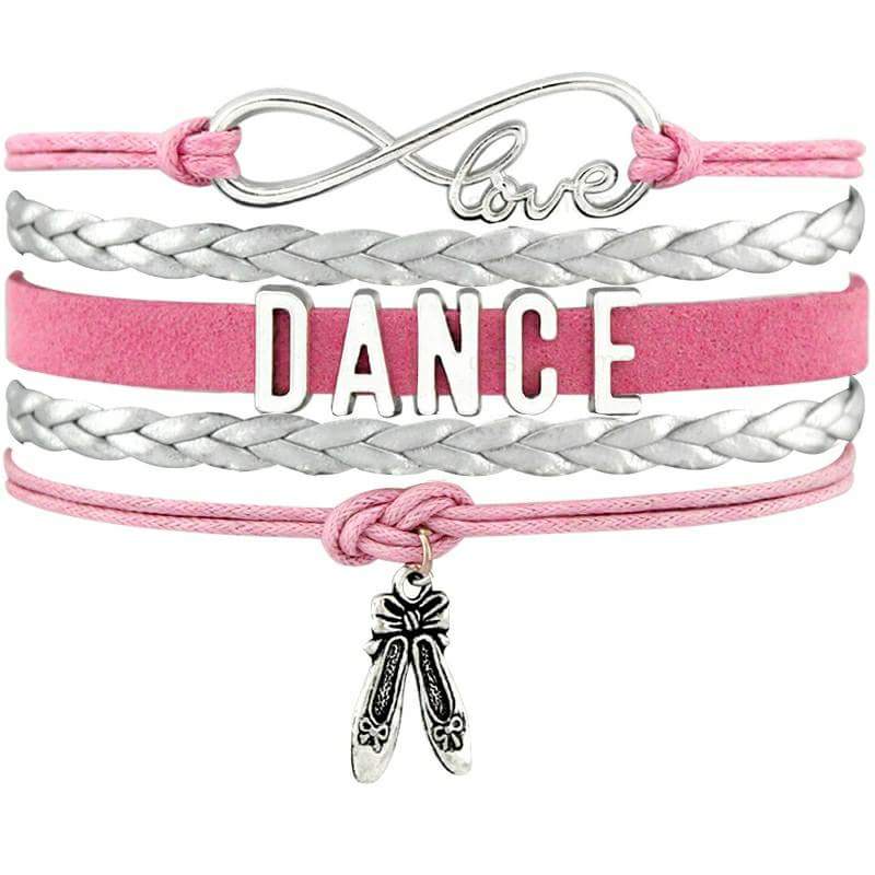 Dance Wrapped Bracelet. This Bracelet is Silver and Hot Pink. With silver charms. The bracelets come with a adjustable links that will fit up to a 9" wrist. There is a silver color lobster clasp.