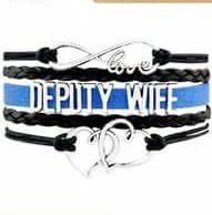 Deputy Wife Wrapped Bracelet. This Bracelet is Black and Royal Blue. With silver charms. The bracelets come with a adjustable links that will fit up to a 9" wrist. There is a silver color lobster clasp.
