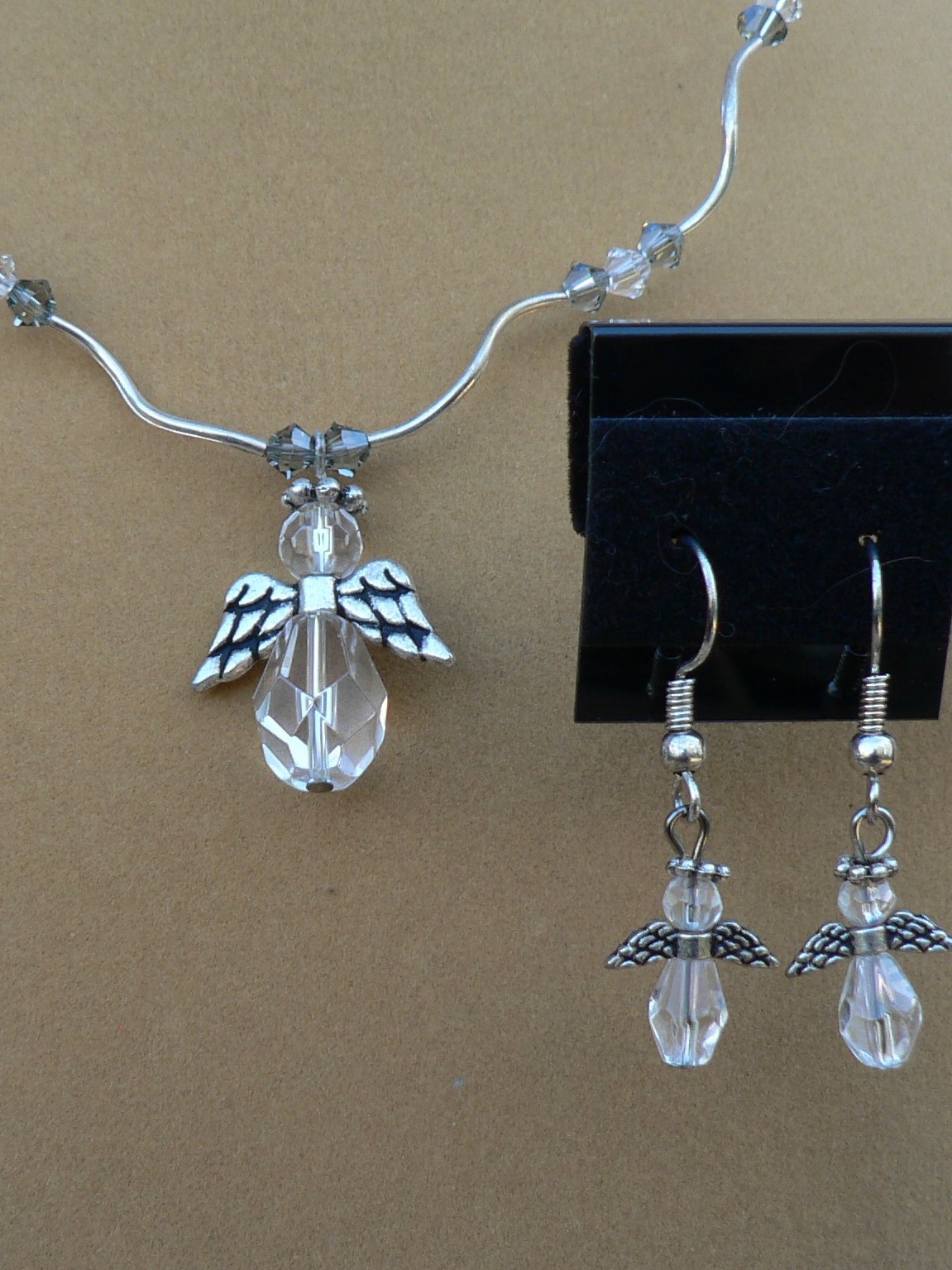 Clear Angel Necklace with Earrings