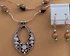 There is a Double Copper Teardrop Necklace. There is 8mm round goldstone beads and green round beads. There is copper wavy tubes in between the beads. The necklace is 19" long and the shortest stand is 17" with a 3" copper extension chain. There is a copper magnet with a copper lobster clasp. Normally the earrings cost $7.50 but if you buy the earrings and necklace together, you save $2.50. You only pay $45.00 for the set.