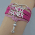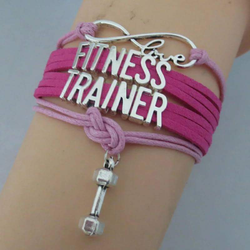 Fitness Trainer Wrapped Bracelet. This Bracelet is Pink and Hot Pink. With silver charms. The bracelets come with a adjustable links that will fit up to a 9" wrist. There is a silver color lobster clasp.