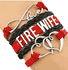 Fire Wife Wrapped Bracelet. This Bracelet is Red and Black. With silver charms. The bracelets come with a adjustable links that will fit up to a 9" wrist. There is a silver color lobster clasp.