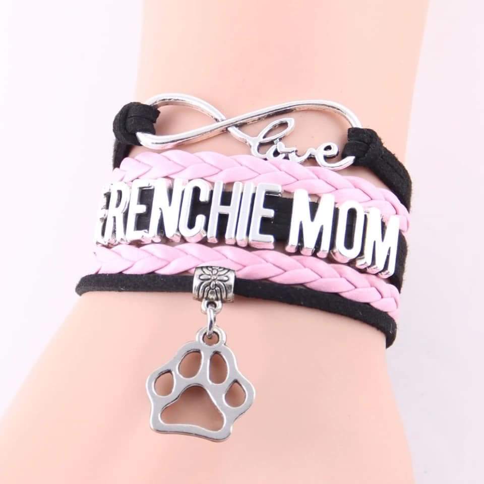 Frenchie Mom Wrapped Bracelet. This Bracelet is Black and Pink. With silver charms. The bracelets come with a adjustable links that will fit up to a 9" wrist.