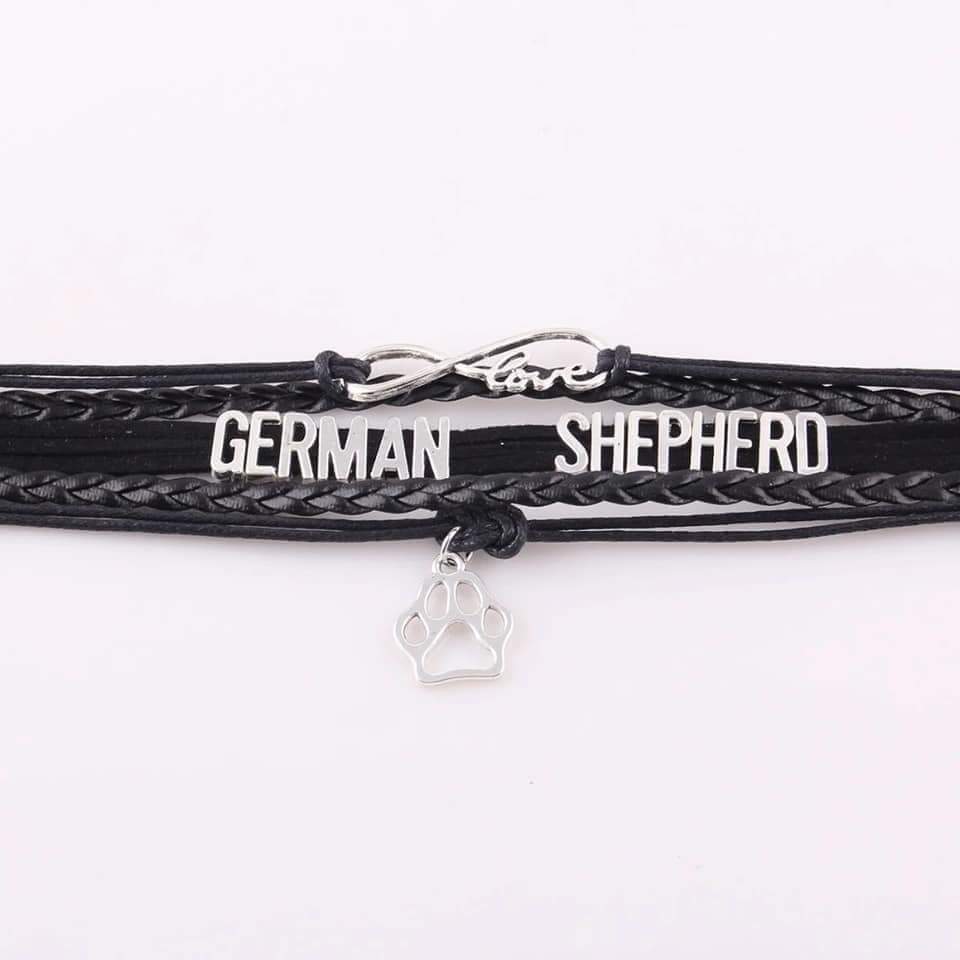 German Shepherd Wrapped Bracelet. This Bracelet is Black. With silver charms. The bracelets come with a adjustable links that will fit up to a 9" wrist.