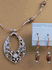 There is a Copper Teardrop Necklace. There is oval goldstone with green round beads. There is copper wavy tubes in between the beads. The necklace is 19" long with a 3" copper extension chain. There is a copper magnet with a copper lobster clasp. Normal the earrings cost $7.50 but if you buy the necklace with the earrings, you save $2.50. You only pay $40.00 for the set.