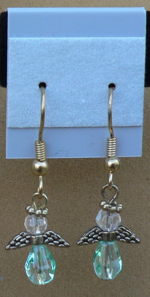 Here is a Peridot Angel Earrings with gold color wings. These angel earrings have gold color fish hooks.