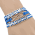 Here is a Grandma loves Grandson Wrap Bracelet. The bracelet is Navy Blue and White Color. The Bracelet is 7" long with a 2" extension chain. On top of the bracelet silver color letter that say Grandma .and on the bottom it says Grandson. In the middle of the bracelet there is a double heart charm.