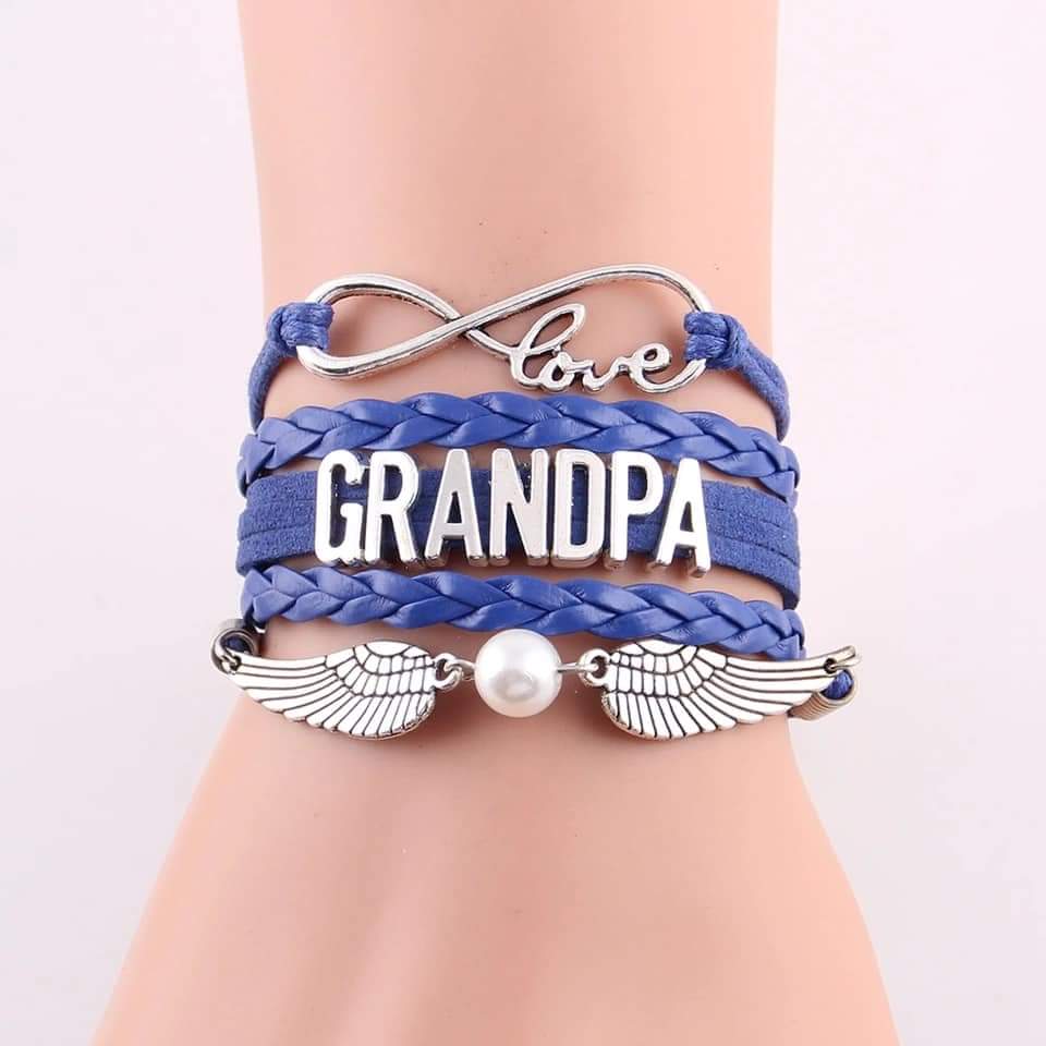 Grandpa Wrapped Bracelet. This Bracelet is Light Navy Blued. With silver charms. The bracelets come with a adjustable links that will fit up to a 9" wrist.