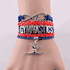 Gymnastics Wrapped Bracelet. This Bracelet is Royal Blue and Red. With silver charms. The bracelets come with a adjustable links that will fit up to a 9" wrist. There is a silver color lobster clasp.