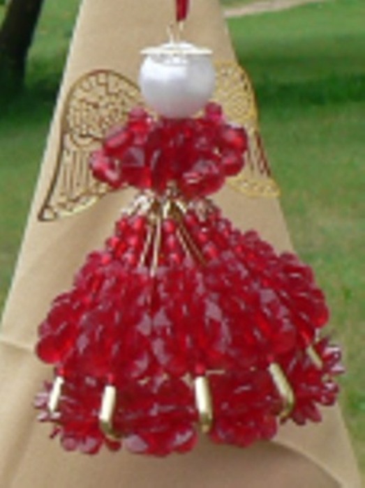 Garnet January brithstone angel. This is a beaded angel. Faith, Constancy, Truth