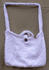 Here is a very nice baby pink knitted bag. This bag has many possibilities. You can use this bag as a shoulder bag, dipper bag and a bag to put items you. This bag has a shoulder handle and two hand handles. There is a button strap to close this bag. This is a nice size bag. There is so many possibilities for the use of this bag.