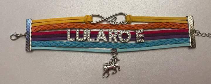 Lularoe Wrapped Bracelet. This Bracelet is Yellow, Orange, Hot Pink, Purple, Light Purple, Aqua and Light Blue. With silver bling charms. The bracelets come with a adjustable links that will fit up to a 9" wrist.