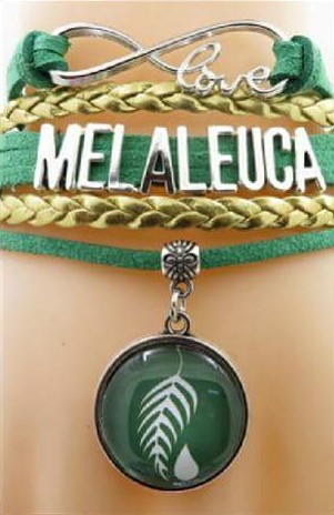 Melaleuca Wrapped Bracelet. This Bracelet is Dark Grass Green and Gold. With silver charms. The bracelets come with a adjustable links that will fit up to a 9" wrist. There is a silver color lobster clasp.