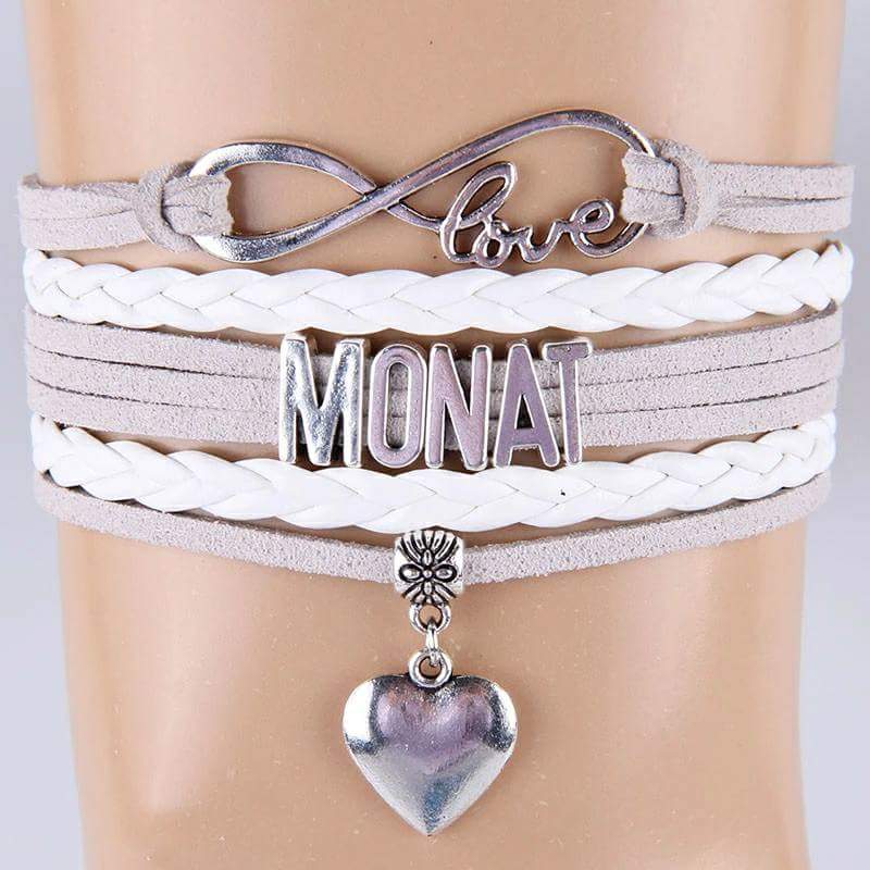 Monat Wrapped Bracelet. This Bracelet is Light Gray and White. With silver charms. The bracelets come with a adjustable links that will fit up to a 9" wrist.
