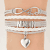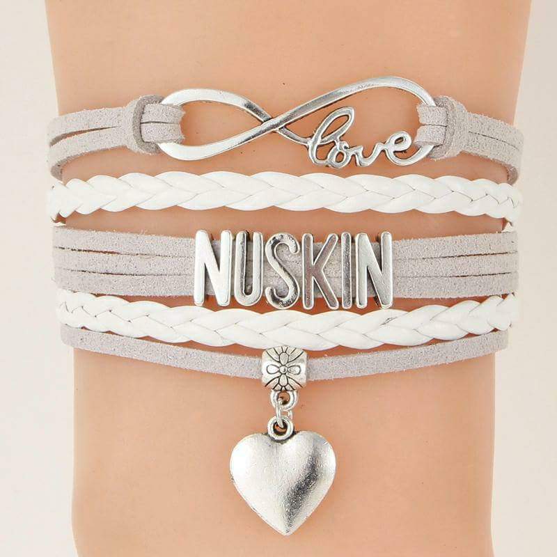 NuSkin Wrapped Bracelet. This Bracelet is Lt. Gray and White. With silver charms. The bracelets come with a adjustable links that will fit up to a 9" wrist.