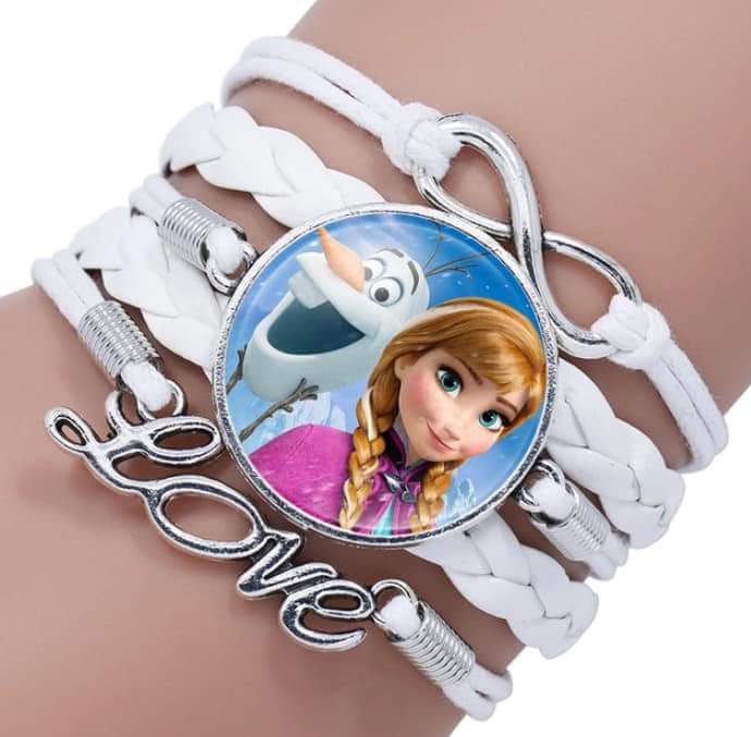 Olfa And Anna Wrapped Bracelet. This Bracelet is White. With a Olfa And Anna Charm. The bracelets come with a adjustable links that will fit up to a 9" wrist.