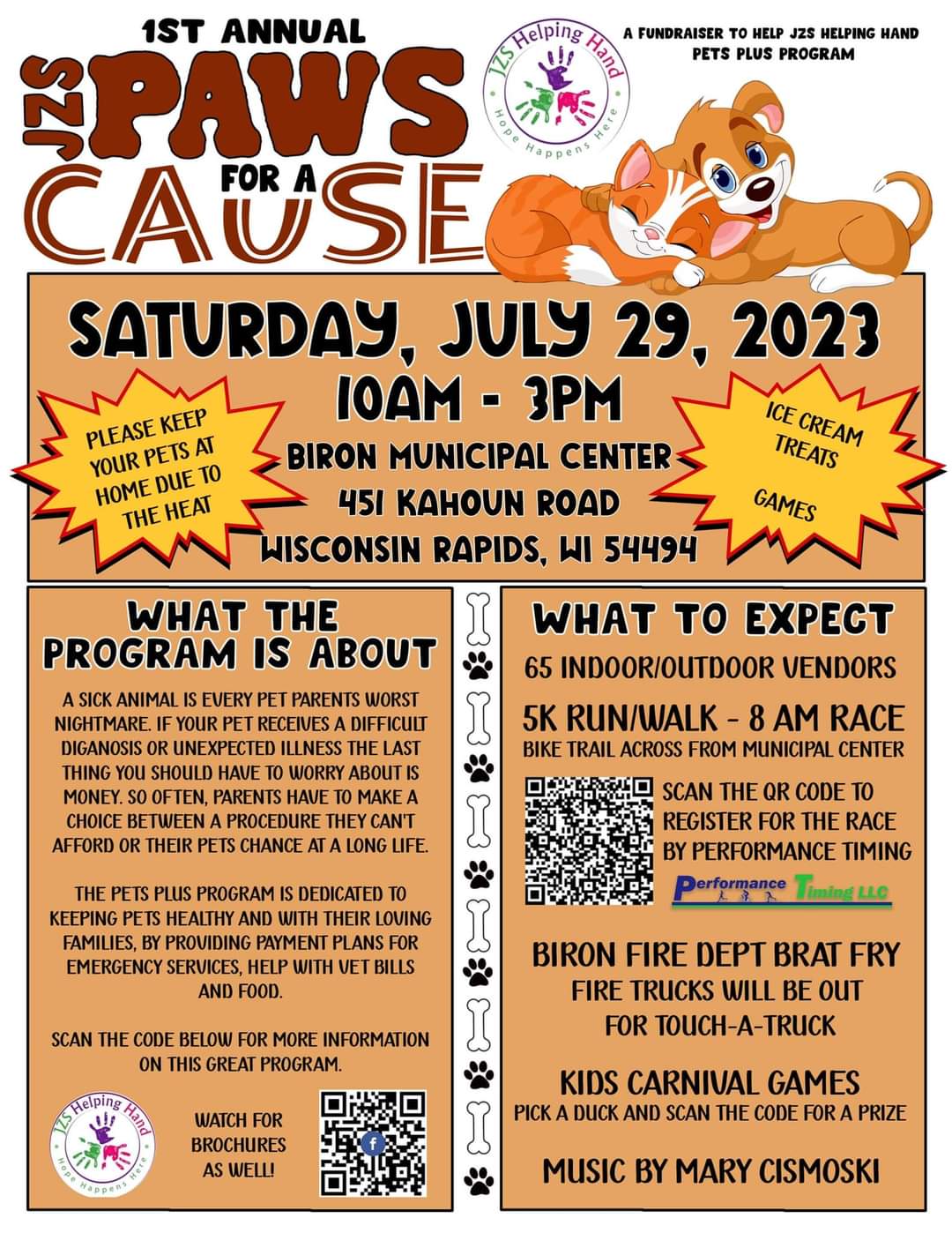 Colorful Crafts WI will be at Paws For A Cause on July 29th 2023. It is at Biron Municipal Center 451 Kahoun Rd. Wisconsin Rapids WI 54494. This is a great Cause to support. Your helping people if they don't have money to take there pet to the vet or if people need food for there pet. Come.out and injoy the event. Thank you