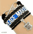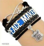 Peace Maker Wrapped Bracelet. This Bracelet is Black and Royal Blue. With silver charms. The bracelets come with a adjustable links that will fit up to a 9" wrist. There is a silver color lobster clasp.