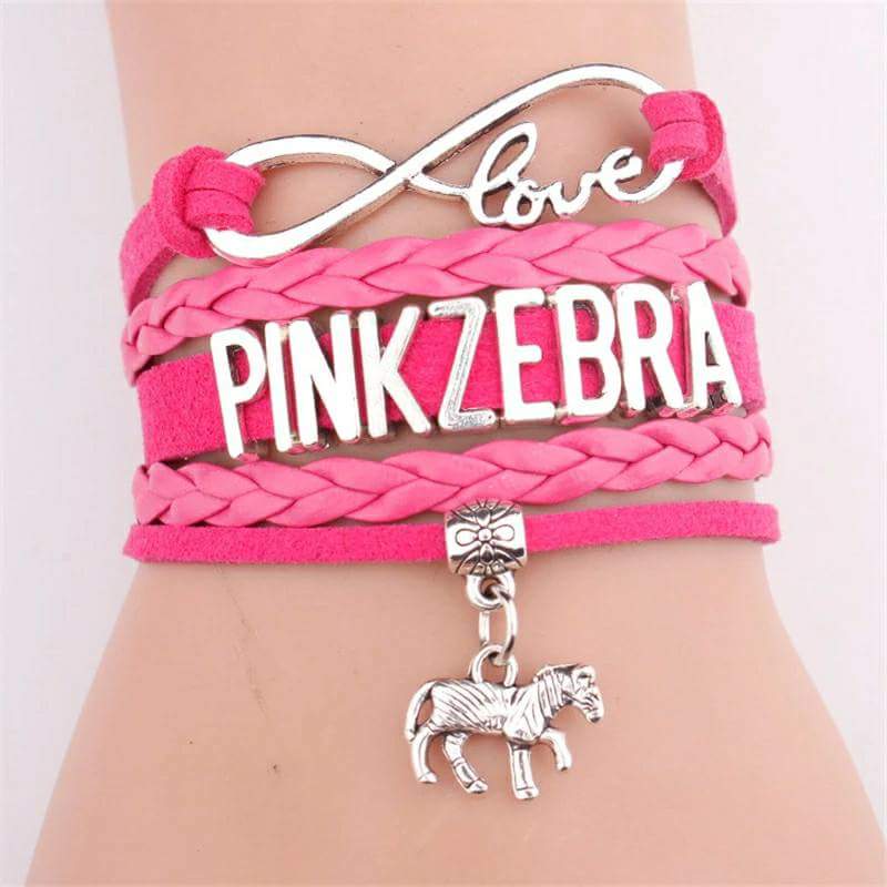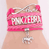 Pink Zebra Wrapped Bracelet. This Bracelet is Hot Pink and Pink. With silver charms. The bracelets come with a adjustable links that will fit up to a 9" wrist.