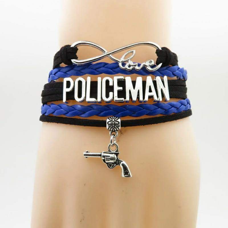 Policeman Wrapped Bracelet. This Bracelet is Black and Royal Blue. With silver charms. The bracelets come with a adjustable links that will fit up to a 9" wrist.