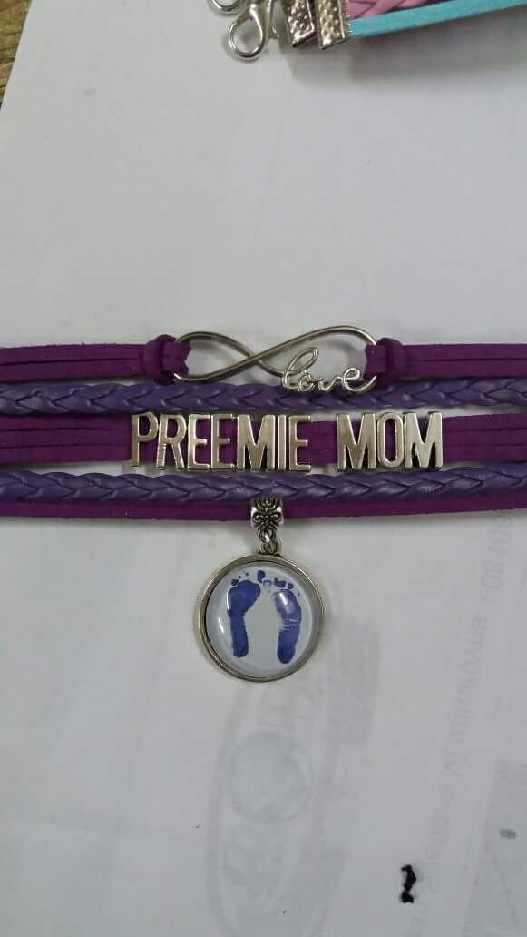 Preemie Mom Wrapped Bracelet. This Bracelet is Purple. With silver charms. The bracelets come with a adjustable links that will fit up to a 9" wrist. There is a silver color lobster clasp.
