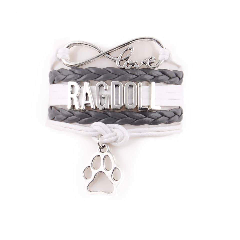 Ragdoll Wrapped Bracelet. This Bracelet is White and Gray. With silver charms. The bracelets come with a adjustable links that will fit up to a 9" wrist.