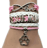 Rescue Mom Wrapped Bracelet. This Bracelet is Pink and White. With silver charms. The bracelets come with a adjustable links that will fit up to a 9" wrist. There is a silver color lobster clasp.
