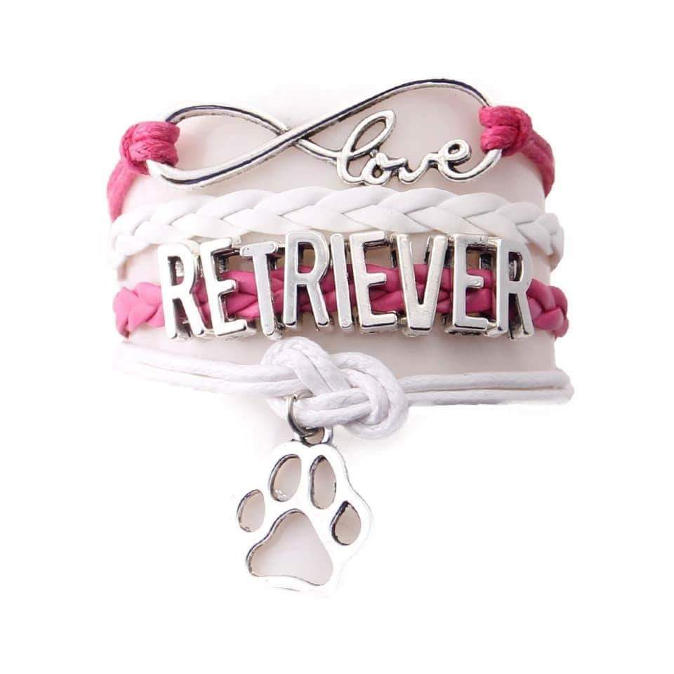 Retriever Wrapped Bracelet. This Bracelet is Hot Pink and White. With silver charms. The bracelets come with a adjustable links that will fit up to a 9" wrist.