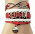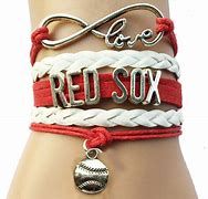 Here is a Redsox Wrap Bracelet. The bracelet is Red and White Color. The Bracelet is 6 1/2" long with a 2" extension chain. There is a silver color baseball charm on the bottom of the bracelet. There is a infinity love charm on the top of the bracelet. In the middle of the bracelet there is silver color letter that say Redsox. What a great bracelet to have if you are a Redsox fan.