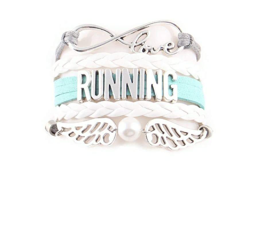Running Wrapped Bracelet. This Bracelet is Silver, White and Light Blue. With silver charms. The bracelets come with a adjustable links that will fit up to a 9" wrist. There is a silver color lobster clasp.