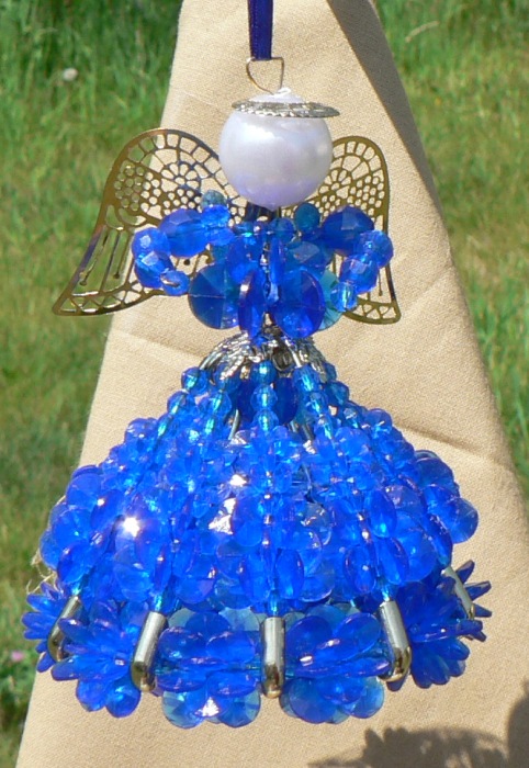 Sapphire September brithstone angel. This is a beaded angel. Wisdom, Clear, Thinking