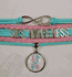 SIDS Awareness Wrapped Bracelet. This Bracelet is Light Blue and Pink. With silver charms. The bracelets come with a adjustable links that will fit up to a 9" wrist. There is a silver color lobster clasp.