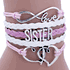 Sister Wrapped Bracelet. This Bracelet is Pink and White. With silver charms. The bracelets come with a adjustable links that will fit up to a 9" wrist.