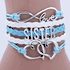 Sister Wrapped Bracelet. This Bracelet is Light Blue and White. With silver charms. The bracelets come with a adjustable links that will fit up to a 9" wrist.