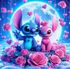 Stitch and Angel Diamond Painting Kit for sale. Size is approximately 30cm by 30cm. The kits come with a picture, diamond dots, tray, tool and wax. This is a full picture with round diamond dots.