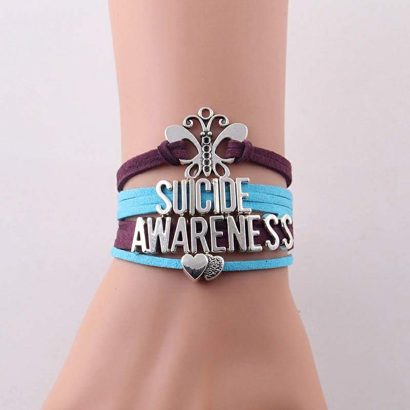 Suicide Awareness Wrapped Bracelet. This Bracelet is Maroon and Light Blue. With silver charms. The bracelets come with a adjustable links that will fit up to a 9" wrist. There is a silver color lobster clasp.